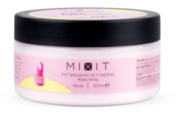 Обертывание с разогревающим эффектом от Mixit содержит розовую гималайскую соль, масла ши, макадамии и жожоба, а также эфирное масло апельсина и черного перца. Именно за счет последнего и возможен разогревающий эффект. Как заявляет производитель, это термообертывание хорошо убирает ороговевшие клетки, питает и тонизирует кожу, а также способствует разглаживанию целлюлита.